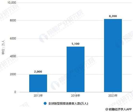 2013-2023年全球新型烟草消费者人数统计情况及预测