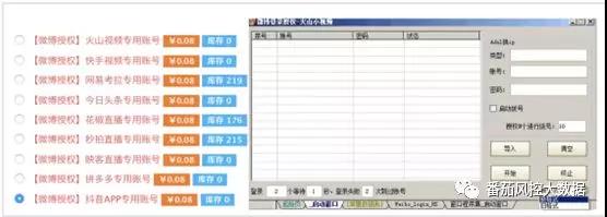 除了直登号外,跳转号也是常见的号码。指使用QQ号、微信号、微博号等快捷登录后,激活绑定而转化而成的平台账号。这里使用的账号并非正常账号,而是称为授权号的特殊账号,这种账号在原有平台质量很低,无法进行大部分业务。所以只用作授权其他平台,购买成本仅几分钱。
