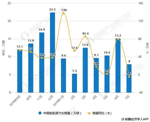 2018-2019年7月中国新能源汽车产销量统计及增长情况