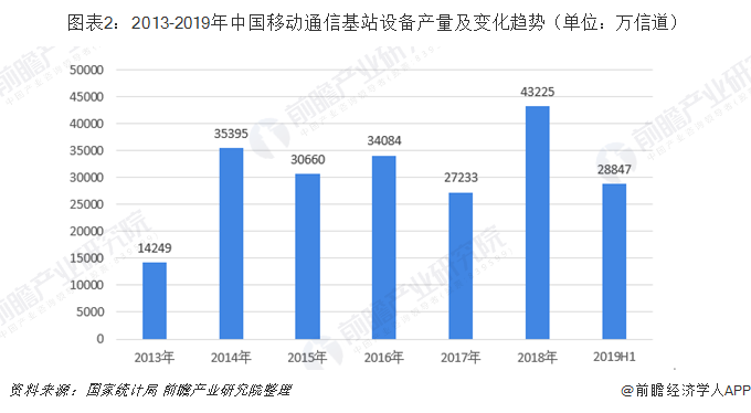 根据工信部统计数据显示,2018年,全国净增移动通信基站29万个,总数达648万个。其中4G基站净增43.9万个,总数达到372万个;2019年上半年,受物联网业务高速增长、基站需求增大影响,移动通信基站总数达732万个,其中4G基站总数为445万个,占60.8%。