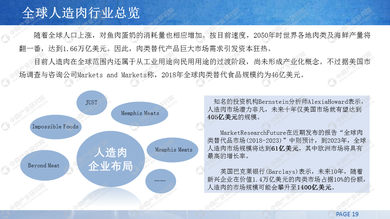 本文仅展示报告部分内容,完整版请登录前沿报告库下载《2019年中国人造肉行业市场前景研究报告》。