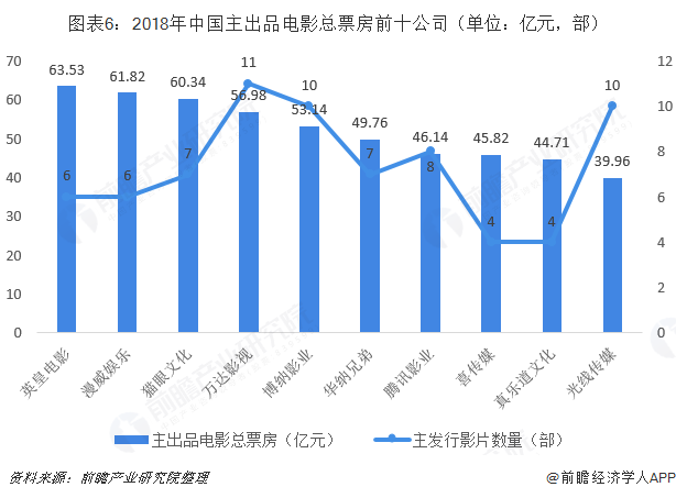 2018年,在阿里影业、腾讯影业、猫眼娱乐等新型互联网影视公司发行优势逐渐凸显的情况下,民营发行公司TOP10的市场份额又下降至73%。但总体来看,中国电影发行市场民营公司集中度相对较高,同时新型互联网发行主体崛起,行业集中度下降。