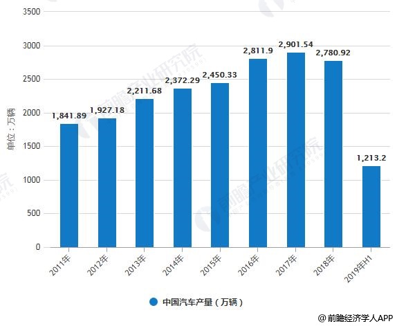 根据中国汽车工业协会数据显示,2018年受经济发展下行压力加大的影响,我国汽车行业在经历十年的快速发展之后进入调整阶段,行业产销量有所下降,分别为2780.92万辆和2808.06万辆,同比下降4.16%和2.76%。2019年1-6月,我国汽车产销量分别为1213.2万辆和1232.3万辆,同比下降13.70%和12.40%,下降幅度较2018年全年有明显扩大,我国汽车市场消费动能并未受“价格促销”等因素影响提升,消费者观望情绪未有明显改善。