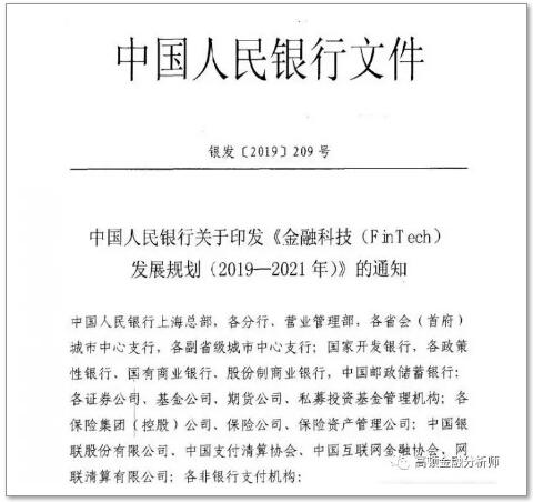 公告称,已于近日印发《金融科技(FinTech)发展规划(2019-2021年)》(下称《规划》),明确提出未来三年金融科技工作的指导思想、基本原则、发展目标、重点任务和保障措施。