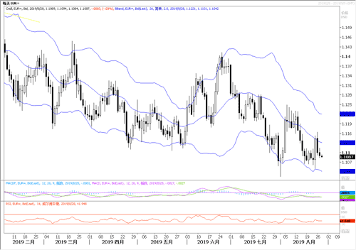 周二(8月27日)欧市盘中,欧元/美元短线下挫,最低1.1092,为两个交易日以来最低。因此前欧洲央行副行长金多斯称,低利率将持续很长时间。然而,汇市夏季交投清淡季节仍在延续,在上周末全球央行年会和G7领导人峰会并未对经济前景给出决定性的研判之后,观望情绪依旧主导市场,令欧元汇价继续陷入横盘整理箱体之中。预计直到9月份,投资者结束休假,同时欧洲央行会期再度迫近之后,欧元兑美元汇价才会面临新一轮的方向抉择。而眼下,无论是英国脱欧还是意大利政局,地缘领域的区区消息并不能撼动汇市盘整的大势。目前欧元/美元正在下探8月15日以来多数时间受困的交投区间中段,其中一个关键支撑就是1.10872。若汇价跌破1.10872支撑区域,将会下看1.1063-658区域。不过一旦汇价重回1.1100上方则将打击空头的信心。当前环境下,欧元/美元还很难被大幅驱动。上周五受经贸局势升级以及美元卖盘的影响,欧元/美元一度强势走高,但在1.11618-67区域遭遇到空头的强势阻击,这令汇价重归平静并再度回撤。汇价料仍将围绕100小时和200小时均线多空双方继续焦灼对抗。
