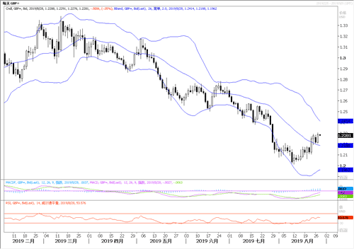 昨日英镑/美元大幅上攻,一度冲破1.23,最高创下一个月以来高位,因此前有报道称,英国反对党将就反对无协议脱欧再次举行会议。离10月31日英国正式脱离欧盟的日子还有不到70天,局势发展如何还要进一步经受磨练。技术面来看,日图上显示,由于英镑/美元未能维持去年底的上升趋势,整体前景不再具有建设性。不过RSI自超卖区间持续回升,且自本月初以来的上升趋势保持完好,暗示英镑/美元可能会继续反弹。短线可能有遇阻回落的调整,关键要看看1.22处能否给予较为坚实的支撑,如此英镑则有望再攀高一线。英镑低位构筑的多头可暂时继续持有观望,看看上方目标能否向1.2330-1.2400迫近。