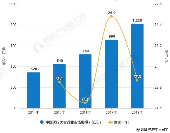 2014-2018年中国医疗美容行业市场规模统计及增长情况