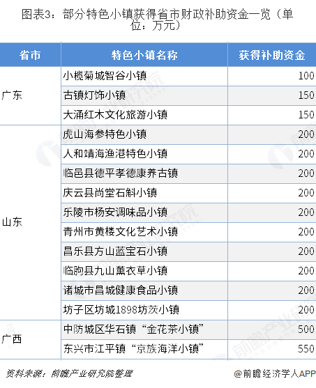 中央财政对特色小镇的奖励补助并未有规定金额,从已有特色小镇获得的补助金额来看,主要为百万级别。相对于几十亿资金建设投入,中央对地方特色小镇的补助其政治意义更大。