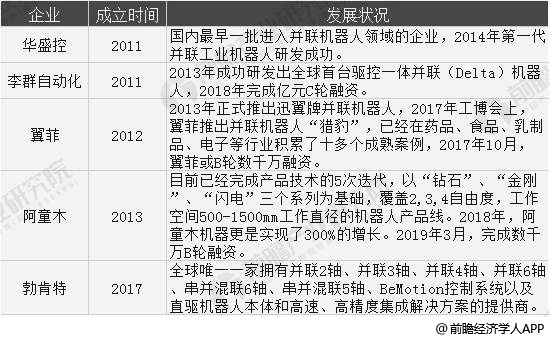 截止2019年中国并联机器人重点企业发展状况分析情况