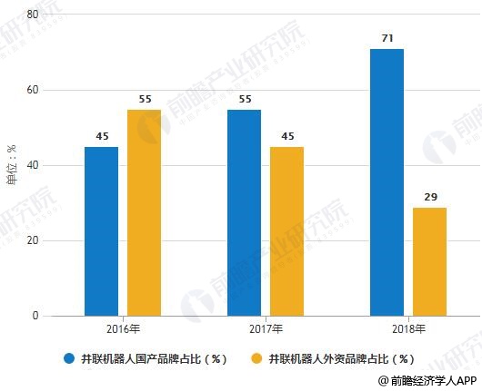 由于在该领域深入布局的外资厂商较少,近年来国产厂商呈野蛮生长态势,随着竞争实力不断提升,国产并联机器人市场份额持续攀升,2017年市场占有率已经达到55%,首次超越外资品牌成为市场主导者。2018年国产市场占有率进一步提升至71%,可以说,国产厂商已逐步占据一定的市场主动权。