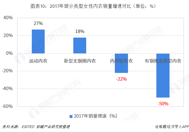 2、在内衣产品设计上,要更加重视内衣的舒适度。2017年,EBITED针对包括维密在内的全球80家内衣零售商进行分析,发现以追求美感为主的内衬型内衣和有钢圈支撑型内衣的销量出现大幅下滑,而以追求舒适为主的运动内衣和新型无钢圈内衣销量却大幅增长。可见,舒适度日渐超过美感,成为消费者购买女士内衣的第一大考虑因素。