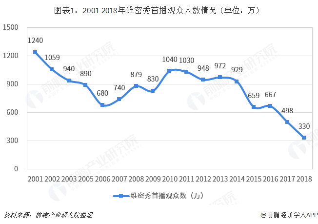 维密秀从1995年开始举办,历经24年,其已逐渐发展成为一种文化,从模特到服饰,再到风格,维密秀一直在悄无声息的引领和改变着内衣潮流,备受世界各国关注。而今,维密秀停办消息一出,在全球女性内衣行业引起了不小轰动。但维密秀的取消并非毫无征兆,从历年维密秀的收视率就可以看出端倪。