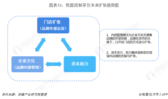 整体领域方面,资本的进入将会带动消费体量及产品研发投入的增长;品牌扩张方面,则会在企业体量、门店数量甚至是产品种类数量上将出现快速增长。此时若内部的管理模式无法稳固地支撑品牌扩张,容易导致资金使用效率低下。一个企业在扩张之初,若无搭建足够清晰的管理架构以及能够深入员工心理的文化理念,易在企业体量增大后,呈现犹如用火柴搭建高塔一样的不稳定状态。因此,对于新式现制茶饮品牌而言,若是能够有效且顺利的扩张,企业文化的浸透及内部管理模式的搭建将成为长跑关键。