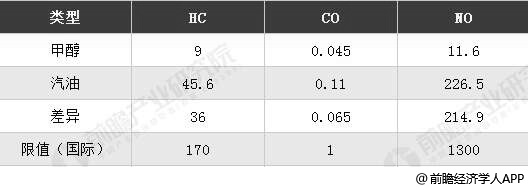 与普通汽车相比,甲醇汽车具有节能环保、经济性等优势。在节能环保方面,甲醇车用燃料具有诸多特点:作为低碳高氧燃料,在其燃烧排放中,常规排放中的化合物(CO、CO2)、氮氧化物(NOX)等较汽油低30%以上,且不含硫化物。根据贵阳市机动车尾气监控中心的数据,甲醇汽车较汽油车的碳氢化合物、一氧化碳、一氧化氮排放量分别降低80%、59%和95%。