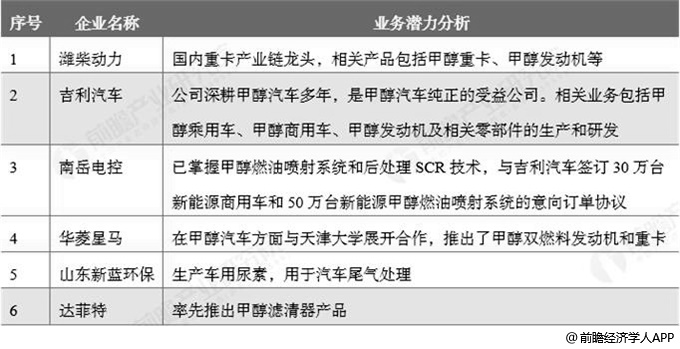 中国现有甲醇汽车相关公司发展潜力分析情况