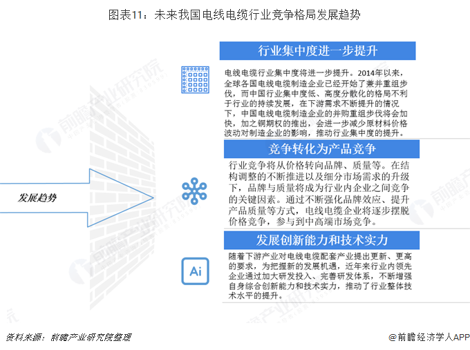 行业竞争将从价格转向品牌、质量等。在结构调整的不断推进以及细分市场需求的升级下,品牌与质量将成为行业内企业之间竞争的关键因素。通过不断强化品牌效应、提升产品质量等方式,电线电缆企业将逐步摆脱价格竞争,参与到中高端市场竞争。
