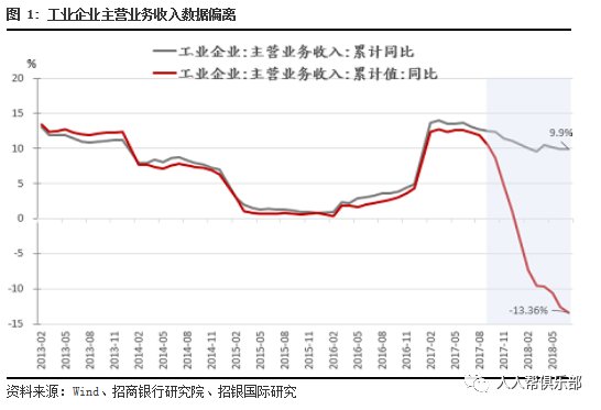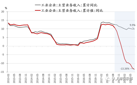 具体而言,从主营业务收入看,统计局公布的今年1-7 月(规模以上)工业企业累计同比增长9.9%,看似不错;但根据收入累计值计算的同比增速为-13.36%,形势严峻;方向一增一减,相差23.26 个百分点。