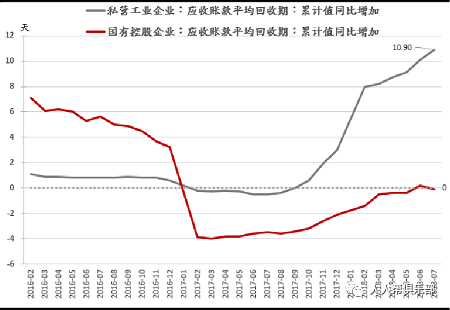 图9:应收账款平均回收期变化:国企缩短,私企加长