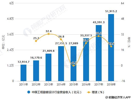 2011-2018年中国工程勘察设计行业营业收入统计及情况