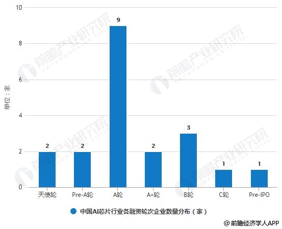 据前瞻产业研究院数据显示,从融资轮次角度看:截至2018年底,以AI芯片设计为主要业务的企业中,有20家参与了融资活动。其中有4家企业融资轮次位于A轮之前,11家企业位于A轮融资阶段,3家企业位于B轮融资阶段,2家企业位于C轮融资阶段之后。