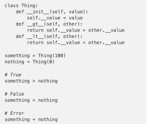 你可以定义使用Python标准操作符符号的对象,这可以让你在特定的环境中使用特定的对象,就像下方的例子一样。