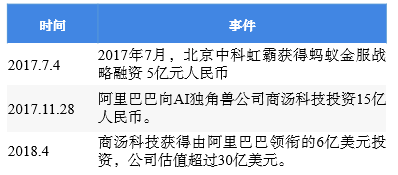 除了通过自身云团队进行人脸识别研究,巨头企业还在通过投资加强在人脸识别领域的话语权。目前,BAT三家企业中,阿里巴巴最为活跃阿。据了解,里巴巴分别在2017年7月、11月和2018年4月对商汤科技进行大额投资。