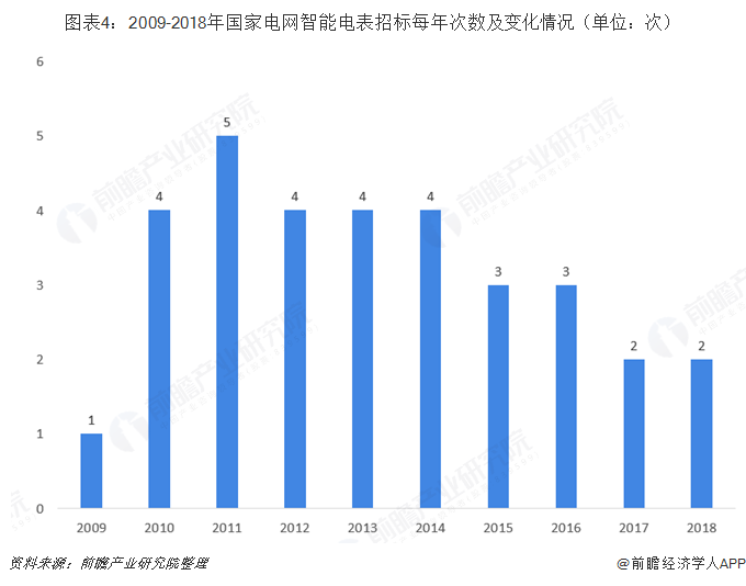 自2009年国家电网开展智能电表推广,对智能电表开始招标以来,每年招标次数呈下降的变化趋势,2011年招标次数达到5次,随后逐年下降,2016年开始,逐渐稳定到每年两次招标,中标企业数量减少,中标金额和中标数量有所增加,行业集中度呈不断上升趋势。