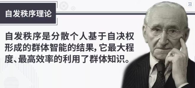 这是哈耶克最具标志性的标签,相当于斯密的“看不见的手”。斯密的“看不见的手”是经济学中的自发秩序,而哈耶克把这种自发秩序扩展到更广阔的领域。哈耶克认为,自发秩序无处不在,任何一个有互动的世界,都会形成自发秩序。