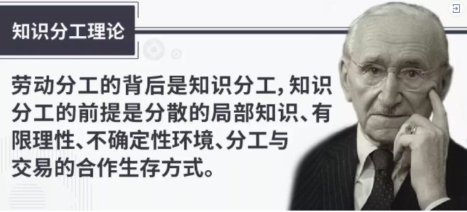 因此,劳动分工的本质是每个人利用自己特有的理性、存储的知识信息,跟他人的理性、知识进行整合,这些知识片段整合在一起,就产生了我们所需要的产品和服务。所以说,最重要的不是劳动本身这种机械性的活动,而是知识。