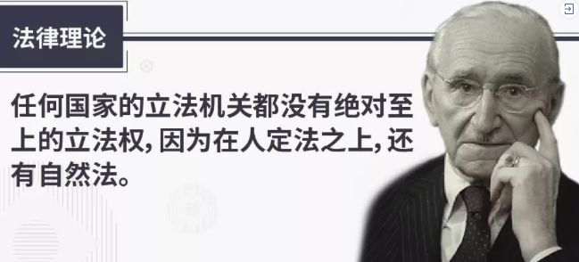 人定法是政府制定的法律,比如各项规章制度,任何国家的立法机关都没有绝对至上的立法权,因为在人定法之上,还有自然法。但人定法可以表达自然法,比如刑法中规定,不准强奸,不准偷窃,不准抢劫,但不能僭越自然法。