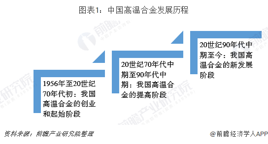 第一阶段从1956年至20世纪70年代初,是我国高温合金的创业和起始阶段。在苏联专家的指导下炼出的第一炉高温合金GH3030,拉开了我国研制和生产的序幕。1960年后,我国开始独立自主地研制和生产主要歼击机发动机所需的各种高温合金材料,建立和完善了我国高温合金的生产和研究基地。根据国内航空发动机研制与生产的需求,开发了有我国特色的工艺,形成了与我国装备相适应的生产路线。