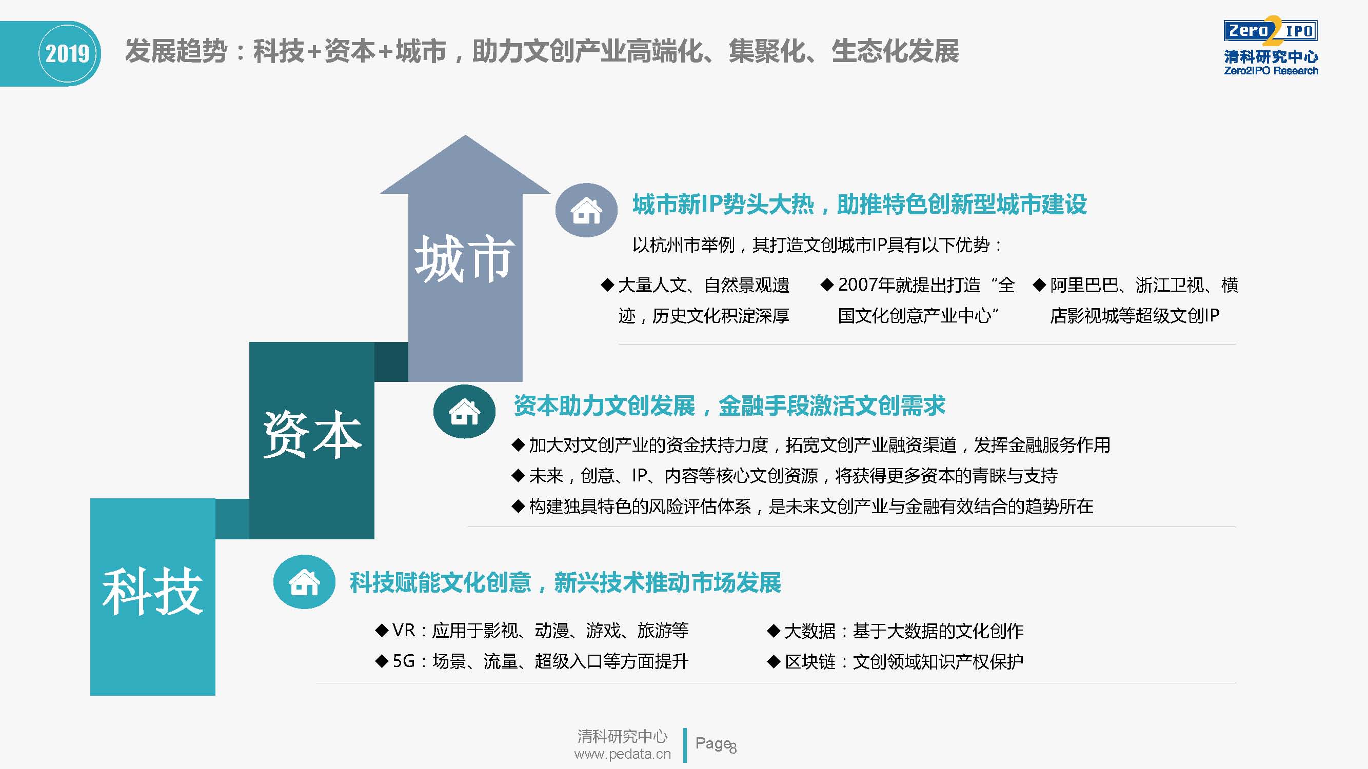 会上,清科集团管理合伙人、清科母基金管理合伙人、清科研究中心总经理符星华女士发布了由清科研究中心基于大数据分析完成的《2018-2019杭州文创产业投资发展报告》(登陆清科研究中心官网,下载完整版报告)(以下简称《报告》)。《报告》从文化创意产业发展现状及发展趋势、文创领域投融资情况、城市文创发展综合指数评价等三个大的方面,对当前国内文创领域的发展环境、发展特点及趋势进行了系统研究。