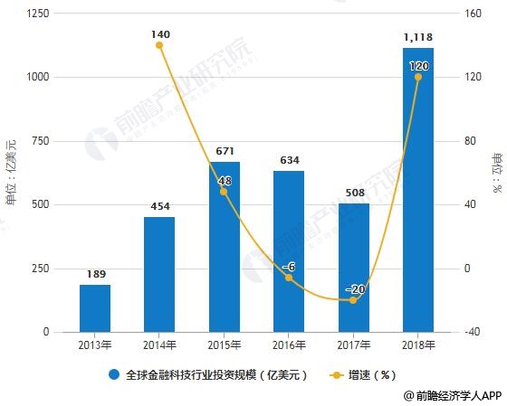 2013-2018年全球金融科技行业投资规模统计及增长情况