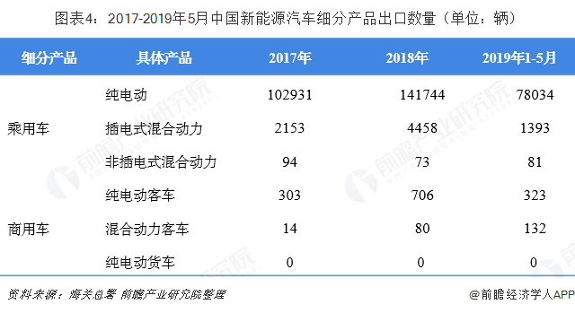 根据中国海关统计,2018年我国纯电动轿车及越野车出口数量为14.17万辆,占新能源汽车出口量的96.38%,出口金额合计1.3亿美元。截至2019年5月,我国纯电动轿车及越野车出口累计达到7.8万辆,占新能源汽车出口量的97.59%,出口金额合计达到0.9亿美元。