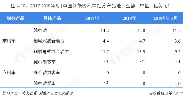 进口主要以非插电式混合动力轿车及越野车为主