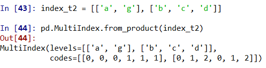 再来介绍:pandas.MultiIndex.from_product函数,它采用的笛卡尔积的形式作为多层索引。
