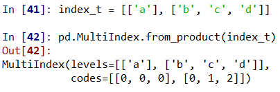 pandas.MultiIndex.from_from_product (iterables, sortorder=None, names=None)