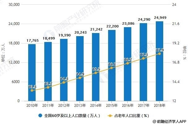 2010-2018年全国60岁及以上人口数量统计及增长情况