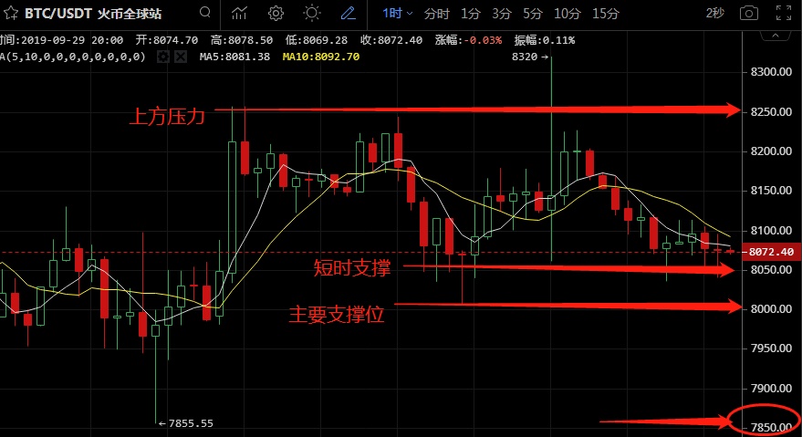 自从比特币从10300暴跌到7700位置后,这几天比特币的行情整体处于整理修复阶段,持续的盘整修正行情中,一直在7700-8500这个大区间内震荡,这两天的震荡区间也是在逐步缩小,基本在8000-8200这个小区间内波动,今天意外向上插了一针,景岩个人建议大家行情波动不大的时候不要去做单,如果你晚上有做空单,没有设置止损止盈行情一根针就上去了你的保证金不足是不好扛过去的。在早间涨至8300上方后一路回调,跌至8020一线后再次反弹,近期震荡区间越来越小,布林带逐渐缩口持平行状态,证明大行情可能随时都会到来,大家操作的时候一定要注意防范,控制好风险。设置好止损止盈。具体进出场可以联系景岩谈币。住大家国庆快乐,赚的盆满钵满。