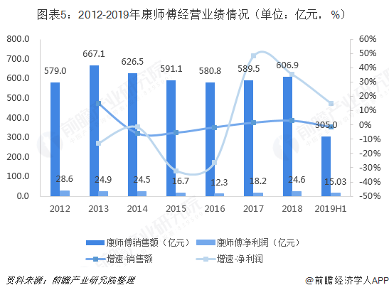 在2017年康师傅营业额开始回升,得益于它能及时的做出判断转型成功,在不断的推出爆椒、豚骨、金汤等口味方便面的同时加强对高端面的推广,让整个方便面行业逐渐往健康化的方向靠近,所以才有了方便面回升的情况出现。2019年上半年康师傅营收为304.95亿元,同比下滑1.62%,为2017年上半年以来首次出现同比下降,但其中方便面营收增长3.68%。