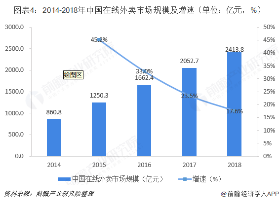2、在线外卖市场增速逐渐放缓