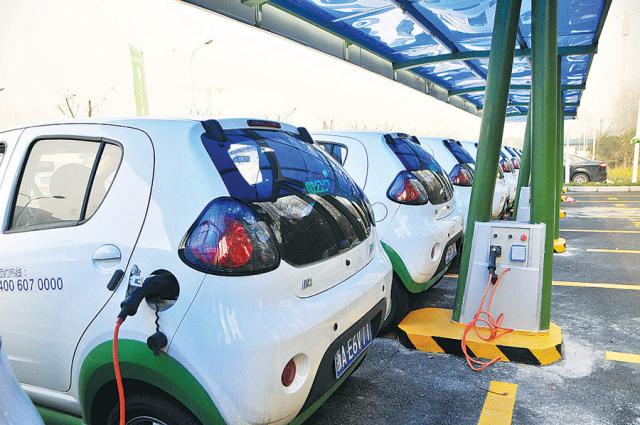 浙江省杭州市,电动汽车正在充电。(图片来源:东方IC)