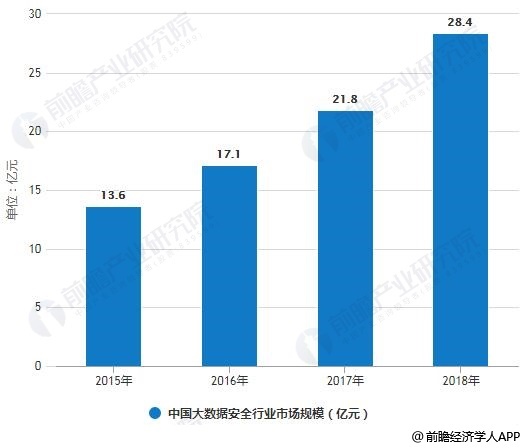 大数据安全是用以搭建大数据平台所需的安全产品和服务,以及大数据场景下围绕数据安全展开的大数据全生命周期的安全防护。大数据安全主要包括大数据平台安全、大数据安全防护和大数据隐私保护,产品主要包含大数据系统安全产品、大数据数据发现、大数据管理运营、敏感数据梳理、大数据脱敏、应用数据审计、大数据审计等。根据赛迪研究院统计数据,2018年我国大数据安全行业市场规模为28.4亿元,同比增长30.5%。