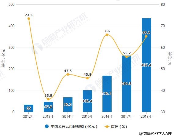 2012-2018年中国公有云市场规模统计及增长情况
