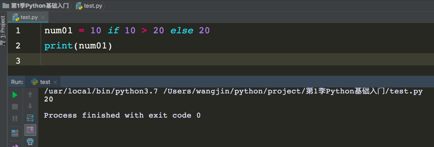 分析:首先判断if后面的10是否大于20,如果大于则返回前面条件为True的结果为10,如果判断的结果为False则返回后面else条件为假的结果20,所以这段伪代码的结果如图: