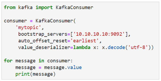 你是否尝试使用Python执行实时流式传输?好吧,我们做到了。以下代码选取自Kafka最佳实践指南,此代码从流中读取,同时并未额外处理。