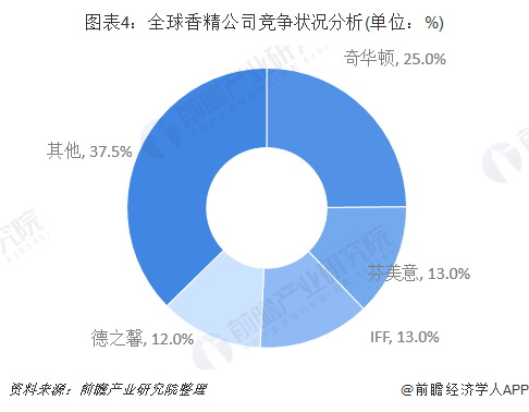 其中,奇华顿、芬美意、国际香精香料公司(IFF)、德之馨,这四大香精公司占据了全球香精香料行业超半数的市场份额,分别为 25%、13%、12.5% 和12%。