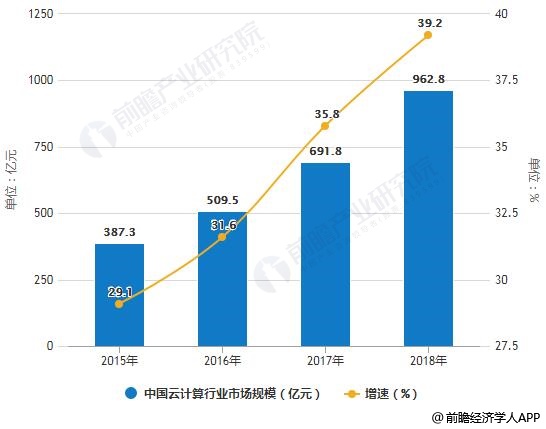 2015-2018年中国云计算行业市场规模统计及增长情况