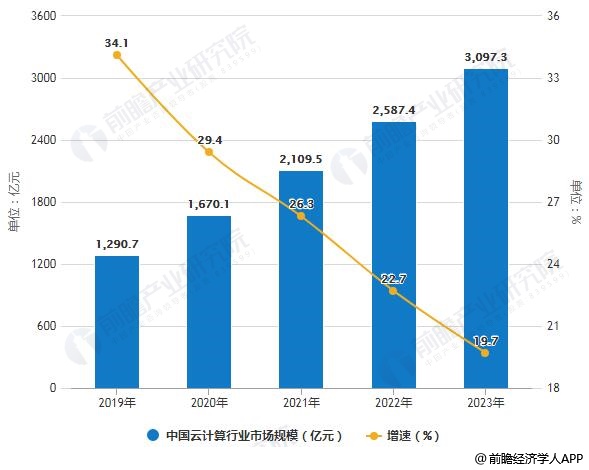 2019-2024年中国云计算行业市场规模统计及增长情况预测