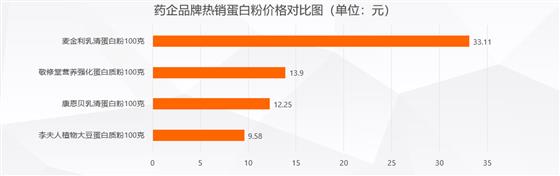 值得注意的是,许多制药企业也开始进军保健品领域,大量药企的加入强化了保健品市场的同质化竞争。大部分药企选择市场热门单品如钙片、蛋白粉来切入中老年保健品市场,同质化竞争激烈,纷纷陷入价格战。对电商平台热销的蛋白粉产品进行价格对比,如下: